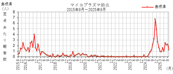 全国的に患者報告数が増加しており、注意が必要です。島根県でも報告が増加しており、大きな流行があった2016年を上回る患者発生となっています。