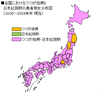 つつが虫病は、全ての都道府県で患者発生が認められています。