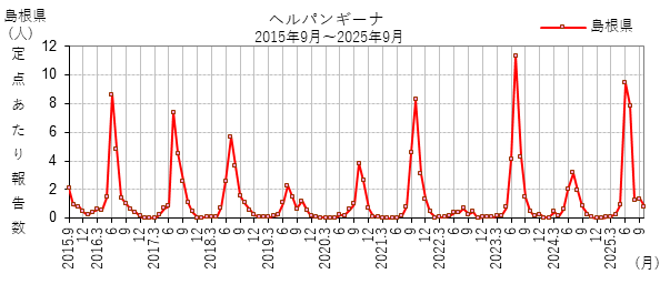 島根県でも毎年梅雨から夏にかけて流行しており、全国も同様の流行状況です。